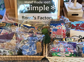 使ってくださる方が笑顔になれるよう目指して作られた雑貨です。ハワイアンの生地が多く使われています。