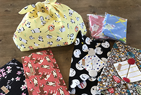 ティッシュボックスカバー、手提げ袋、袱紗など、可愛い柄のハンドメイド雑貨です。
